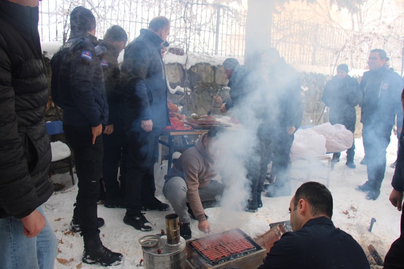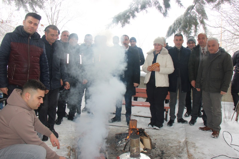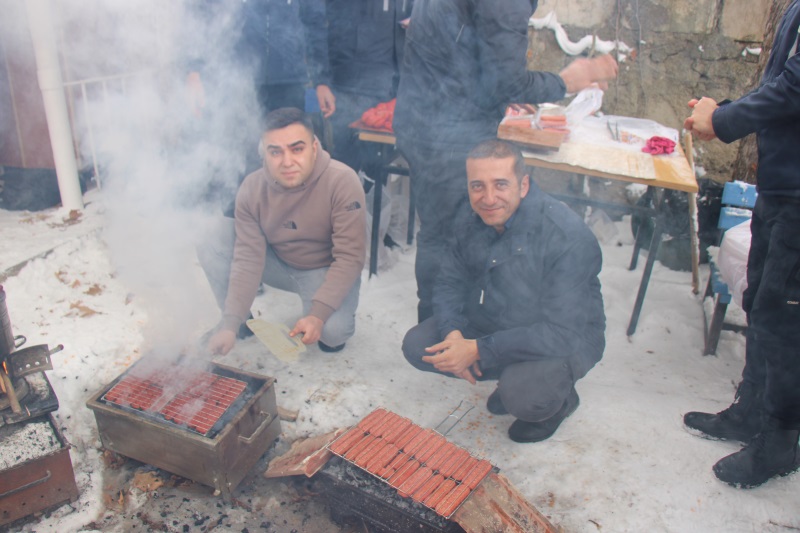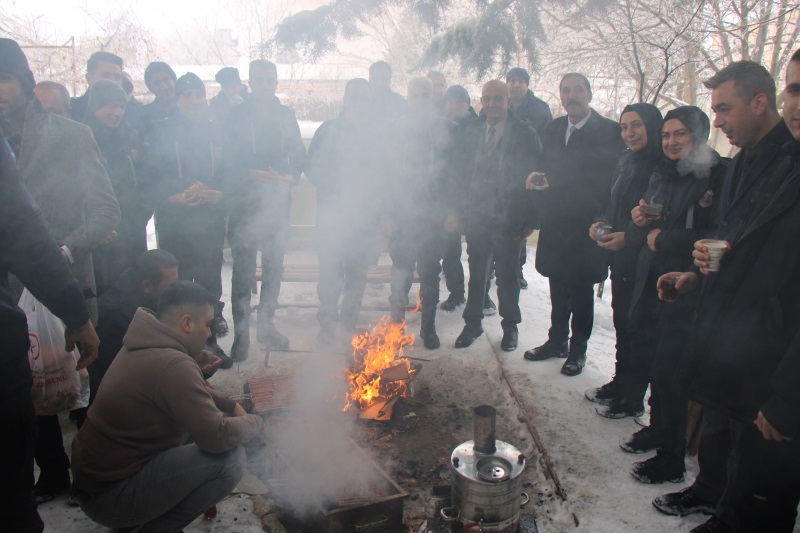 Elazığ E Tipi Kapalı C.İ.K. da bu yıl ilki düzenlenen karda sucuk ekmek etkinliği ceza infaz kurumumuz hobi bahçesinde düzenlendi. Etkinliğe Kurum Müdürümüz Ferdi AKGÜN, Elazığ İl Jandarma Koruma Şube Müdürü, Elazığ İl Jandarma Asayiş Şube Müdürü, Elazığ Ceza İnfaz Kurumları Jandarma Tabur Komutanı ve Elazığ 1 Nolu Yüksek Güvenlikli Ceza İnfaz Kurumu Müdürü, kurumumuz yöneticileri ve personellerin katıldığı etkinlikte personellere ekmek arası sucuk ve sıcak çay ikram edilirken yakılan ateş etrafında keyifli sohbetler gerçekleştirildi.